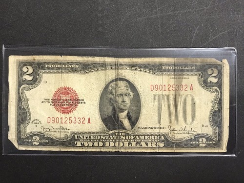 1928g 2 dollar bill value. What Is The Value Of A Red Seal Two Dollar Bill? If you have one of the more common series (D, G) of the 1928 $2 bill, the value is $3-$10 for average grade and around $50 - 60 if in uncirculated condition. The C-series are less common and may fetch prices up to $12 if in good condition, up to $20 if in very fine condition, and up to $200 in uncirculated condition. $2 Bills - PaperMoneyWanted.com $2 Bills PaperMoneyWanted.com appraises and buys your old paper money and dollar bills. Submit your note for an offer today. ... 1928G $2 Legal Tender Red Seal: 1953 $2 Legal Tender Red Seal: ... 1863 $2 Bill Value - How Much Is 1863 Deep River National Bank of Deep River Connecticut $2 Worth? Value of 1928 $2 Dollar Bills - Old Money Prices 1928 $2 bills have a Red seal and Serial numbers Thomas Jefferson is at the center There are several varieties ( 1928, 1928A through G) which impact the value Condition is King when figuring out values 99% of these bills sell for $5 each, regardless of what people tell you Keep reading to learn if your bill is potentially worth thousands. Values 1928 5 Dollar Bill Red Seal Value | Learn About This Bill The value is mainly going to depend on the series and the bill's condition. Below are the values for each series in very fine condition and MS 63 uncirculated condition. Series. Very Fine. MS 63 Uncirculated. 1928. $24. $125.