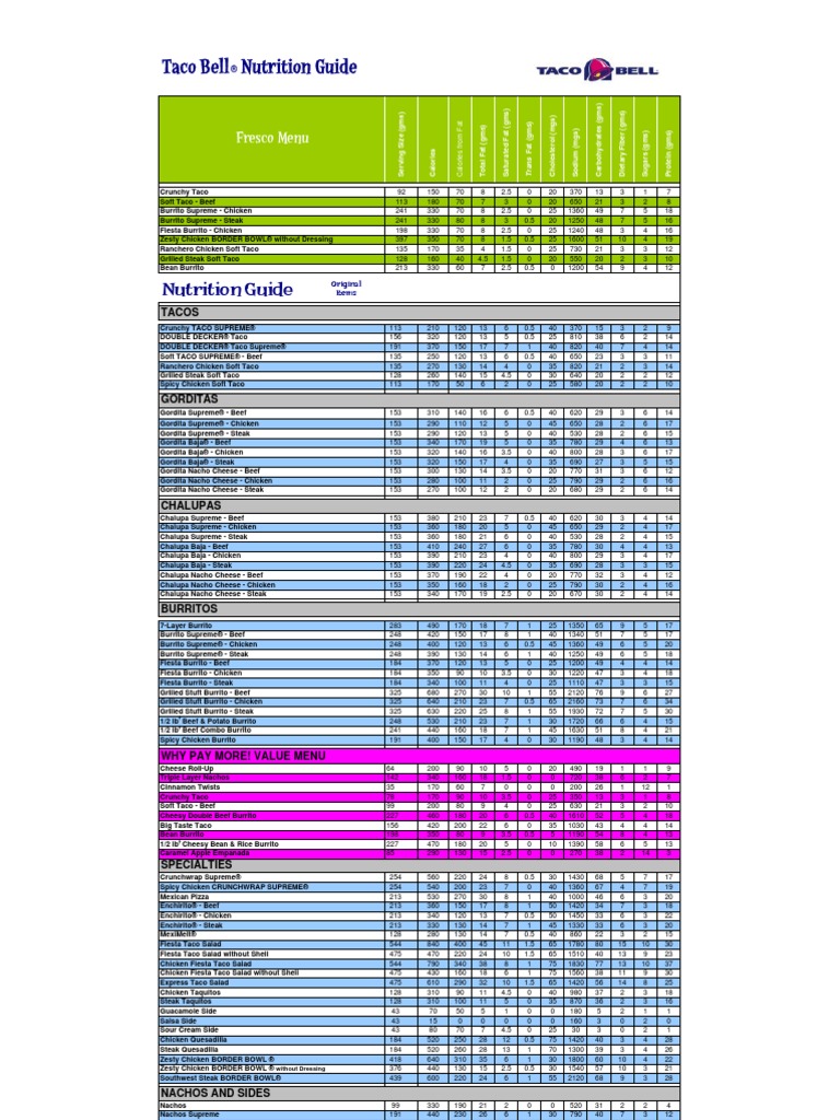 Taco bell nutrition chart