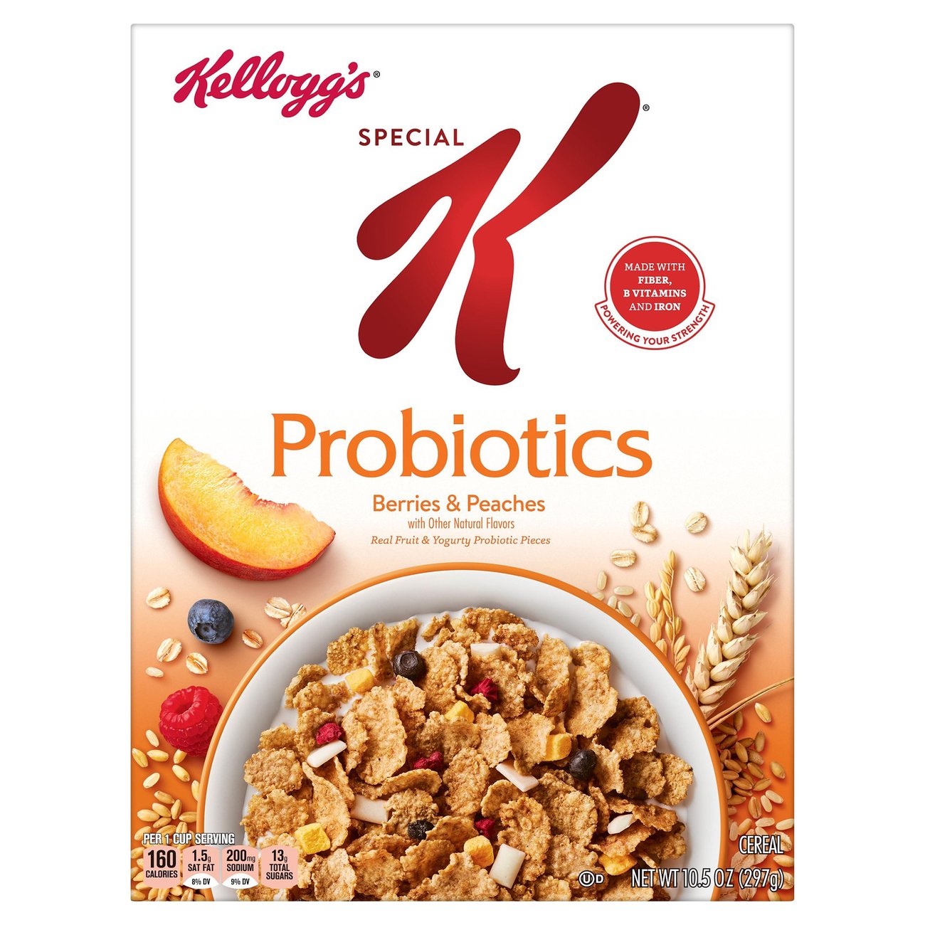 Special K Cereal, Red Berries, 16.7-Ounce Boxes (Pack of 4) 4 boxes of 16.7 ounce Special K Red Berries Cereal Delicious and crunchy fat-free blend of wheat and rice flakes with strawberries Each serving includes 3 grams of fiber for dietary wellbeing and satisfaction Just 110 calories per serving with 45 percent of recommended daily iron intake