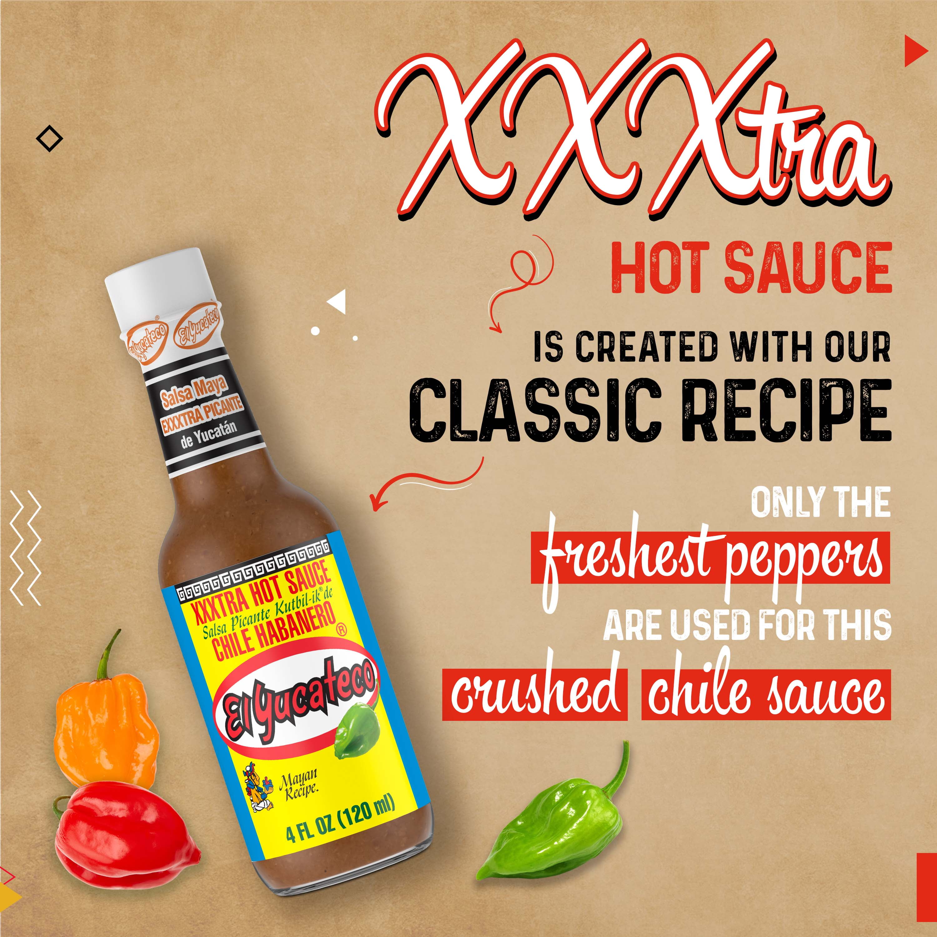 El Yucateco XXXtra Hot Habanero - ChilliWorld.com The hottest of the El Yucateco hot sauces, just fresh peppers ground up and spiced, it's as simple as that! No artificial colourants. Rated at 11,600 scoville units. Great to add to any food or serve as a side dish mixed with a few drops of lemon or lime juice. A long slow burn that's received rave reviews from chili-heads worldwide. El Yucateco XXXtra Hot Chile Habanero - HOTSAUCE.COM Item Code: HSC1348. Processing: Typically Ships within 24 to 48 Hours. Only 95 items left in stock! El Yucateco Salsa Picante de Chile Habanero XXXTra Hot Habanero Hot Sauce (4 FL.OZ. / 120 ml): Weighing in at about 11,000 scovilles units, this is by far the hottest of the wonderful line of sauces from Merida, Yucatan, Mexico. From Mexico. El Yucateco XXXTRA HOT Sauce with Buffalo Wild Wings - YouTube Checkout the entire Feed Me More Nutrition line at FeedMeMore.com and save 10% with YOUTUBE10 and for all NEW 1st Time Buyers Save 20% for your 1st Time with... El Yucateco Extra Hot Chile Habanero Sauce - 4oz : Target Description. Get some extra hotness and spice up your meals with the Extra Hot Chile Habanero Sauce from El Yucateco. Add an extra kick of flavor to dinner or lunch with this chile habanero sauce made with crushed chili. The recipe is inspired from culinary traditions of the ancient Mayan civilization for a pure, rich and authentic taste.