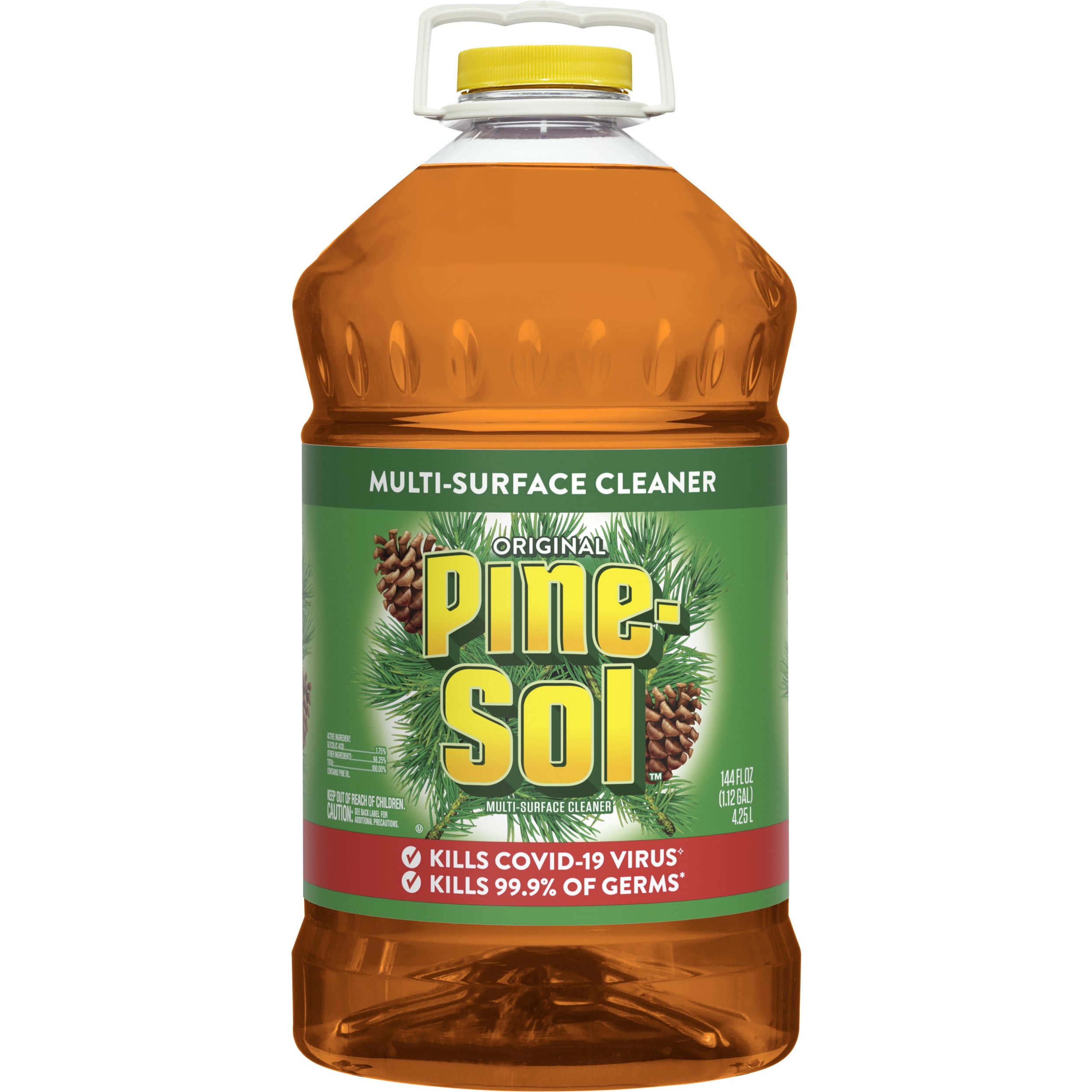 Pine-Sol Original Multi-Surface Cleaner Kills 99.9% of Germs This Pine-Sol concentrate cleaners penetrates and removes messes on most hard nonporous surface indoors or outdoors, including appliances, outdoor furniture and more Deodorize and wipe out odor causing bacteria with the long lasting fresh scent of lemon in a dilatable formula to tackle any job