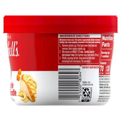 Campbell's® Chunky® Chicken Noodle 540 mL - Campbell Company of Canada Campbell's® Chunky® Chicken Noodle (540 mL) This delicious classic is now jam packed with even bigger pieces of tender chicken and carrots, simmered in a mouthwatering, savoury broth. Nutritional Information Ingredients Food Labels: Campbell's Chicken Noodle Soup (Warning: May ... - HubPages chicken stock, enriched egg noodles (wheat flour, eggs, niacin, ferrous sulfate, thiamine mononitrate, riboflavin, folic acid), chicken meat, water, salt, chicken fat, monosodium glutamate, cornstarch, mechanically separated chicken, modified food starch, yeast extract, flavoring, sodium phosphate, soy protein isolate, beta carotene, and chicken … Campbell's Chicken Noodle Soup Allergy and Ingredient Information Campbell's Chicken Noodle Soup Low in fat and cholesterolNo artificial flavors, UPC Code 051000012517 Manufactured by Campbell Soup Co. Allergen Inside ... Nutrition Label. Nutrition Facts. Serving Size 0.50 cup. Amount Per Serving. Calories 60 Calories from Fat 20 % Daily Value* Total Fat 2g. 3.07%. Saturated Fat 0.5g. Campbell's Simply Campbell's Chiciken Noodles Soup, 148.8 Ounce Simply delicious, simply Campbell's. Product details Package Dimensions : 13.3 x 6.38 x 5.08 inches; 9.3 Pounds UPC : 051000229335 Manufacturer : Beeps and Bells Corporation ASIN : B07LD42PNG Best Sellers Rank: #92,126 in Grocery & Gourmet Food ( See Top 100 in Grocery & Gourmet Food) #165 in Packaged Chicken Soups