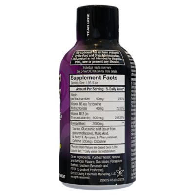 5 hour energy ingredients label. Red Bull - Wikipedia Red Bull is a brand of energy drinks of Austrian company Red Bull GmbH.With 38% market share, it is the most popular energy drink brand as of 2019. Since its launch in 1987, more than 100 billion cans of Red Bull have been sold worldwide, including 9.8 billion in 2021. Energy Drinks | The Nutrition Source | Harvard T.H. Chan ... (8) They concluded that consuming energy drinks 10-60 minutes before exercise can improve mental focus, alertness, anaerobic performance, and endurance in adults, largely through the effects of caffeine. However, other ingredients in these drinks require more study to demonstrate their safety and effects on performance. Celsius Energy Drink Caffeine and Ingredients (Info) Mar 15, 2021 · Table as from Celsius’ nutrition label *Based on a 2000 calorie diet. Ingredients in Celsius Energy Drink. Aside from those listed in the table above, a can of Celsius also contains: MetaPlus ® Proprietary Blend. Taurine; Guarana extract (seed) Caffeine (caffeine anhydrous) Glucuronolactone; Ginger extract (root) Green Tea Leaf extract (15% ... Nutrition Facts of Red Bull (With Details) – Energy Drink Hub Feb 19, 2022 · helps in the formation of energy: 5.1 µg (100% of recommended daily intake, RDI) Vitamin B5 (Pantothenic Acid) improves mood & boosts metabolism: 5.1 µg (50% of RDI) Vitamin B6: turns food into energy, helps create neurotransmitters, such as serotonin and dopamine: 5 mg (250% of RDI) Vitamin B12: produces energy by metabolizing fat and proteins