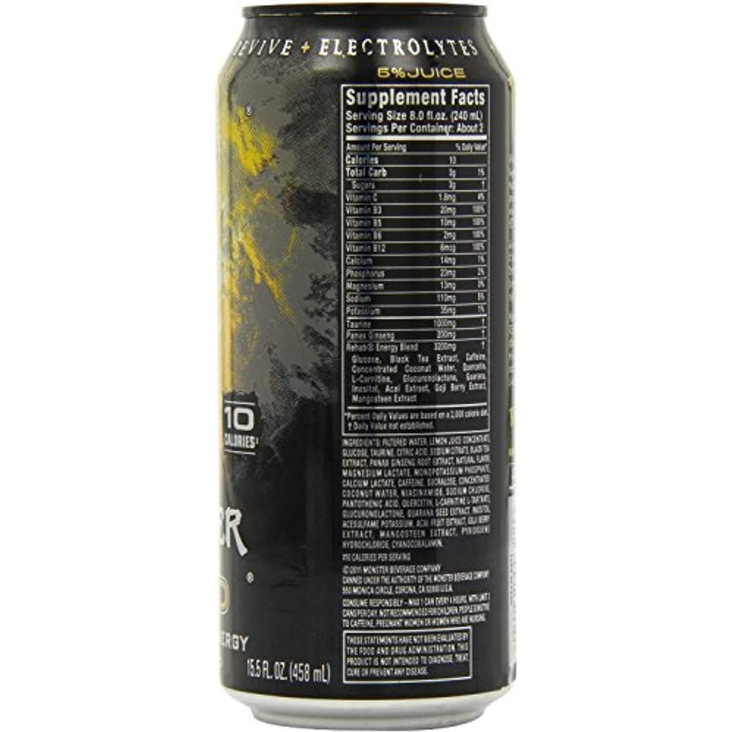 Monster Rehab Tea Lemonade Energy Drink, 15.5 Fl. Oz., 10 ... - Walmart.com Monster Rehab Tea Lemonade Energy Drink, 15.5 Fl. Oz., 10 Count (4.7) 32 reviews $15.68 10.1 ¢/fl oz Check availability nearby Pickup not available at Sacramento Supercenter Sponsored $2.28 Monster Java 300 French Vanilla, 15 Fl Oz Pickup Delivery 3+ day shipping About this item Nutrition information Nutrition facts