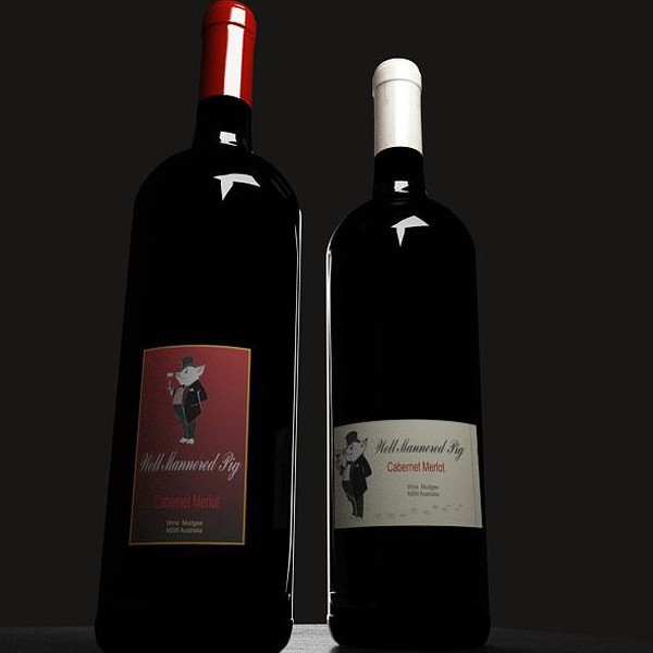 Wine with pig on label