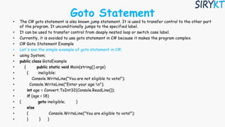 Can I jump to a case inside a switch using goto? I have a few choices. One is that I have that label outside both of the switch-cases and its not a switch case label. There, if I want to ...