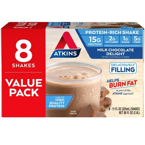 Milk Chocolate Delight Shake - Nutrition Facts - MyFoodDiary Nutrition Facts ; Fat 47.9% ; Carbs 16.6% ; Protein 35.5% ... Atkins Shakes Nutrition Facts - Cully's Kitchen Mar 9, 2022 ... Atkins Shakes Nutrition Facts,Atkins Chocolate Shake Calories,Atkins Protein Shakes Ingredients,Atkins Chocolate Shake Ingredients. Atkins® Plus Chocolate Each delicious Atkins PLUS Creamy Milk Chocolate shake contains 30g of protein, 7g of fiber and 20 vitamins and minerals. Atkins PLUS shakes give you steady ...