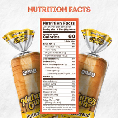 › ip › Nature-s-Own-ButterbreadNature's Own Butterbread, Sliced White Bread, 20 oz Loaf ... Plus, with 0 grams of trans fat per serving, Nature's Own Butterbread is a low-fat food and the perfect sliced bread option for sandwich and toast recipes. You'll be amazed at how great your favorite sandwich tastes with Nature's Own Butterbread.