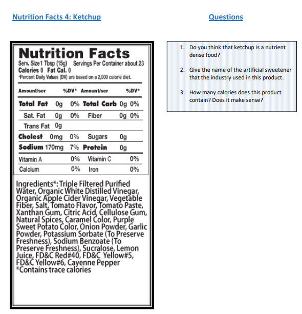 Ketchup nutrition label
