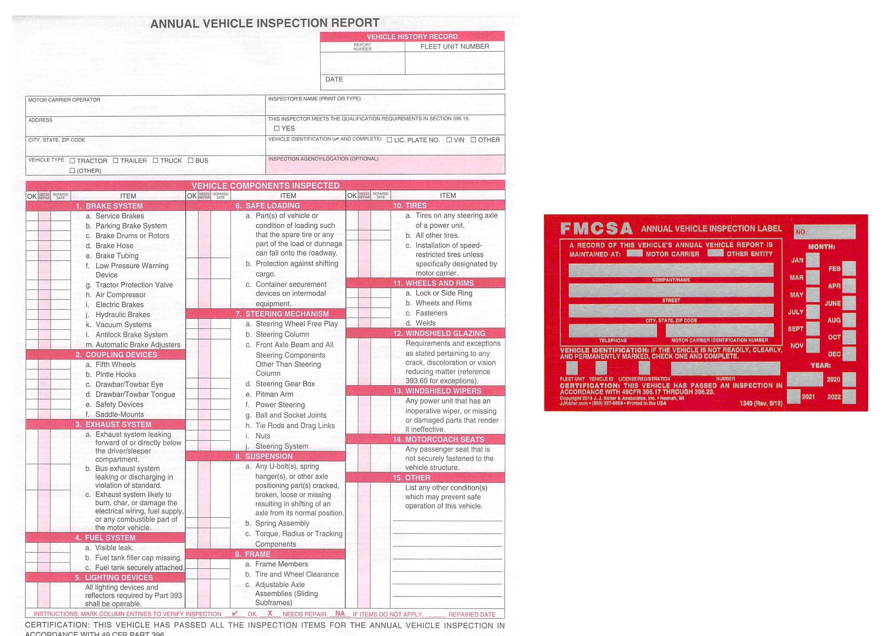 Annual Vehicle Inspection Report Form 10-pk. (Snap-Out Format, 3-Ply Carbonless, 8.5" x 11.75") + Label with Punch Boxes 10-pk. (Aluminum, Permanent ...